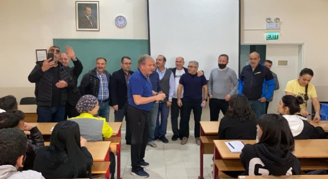 Sınıftakilere efsane kadroyu tek tek tanıştıran Nazım Saraçoğlu, daha sona 30. yıl pastasını ilk talebeleri ile birlikte kesti.