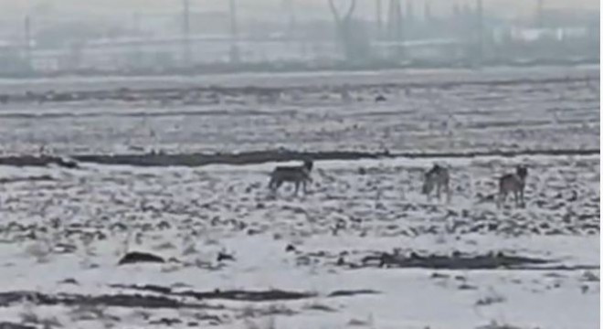 Soğuk hava şartlarının etkisini artırmasıyla birlikte dağlık alanlarda yiyecek bulmakta zorlanan kurtlar, Iğdır Ovası’na indi.