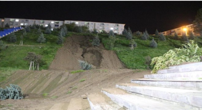 Erzurum’da Mevlana Vadisi isimli parkta su tesisatında oluşan arıza sonrası biriken suyun zemini yumuşatması sonucu toprak kayması meydana geldi.
