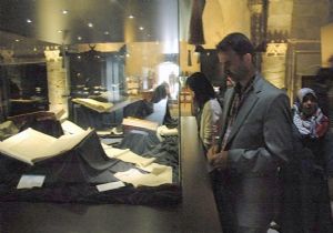 ERZURUM (İHA) - Erzurum Müftülüğü tarafından açılan Mukaddes Miras Mushaf-ı Şerif sergisi 3 ayların başladığı bugün vatandaşlar tarafından ziyaretçi akınına uğradı. 19.yüzyılda Osmanlı eserleri arasında yer alan 25 metrelik bez üzerine yazılan Kur’an-ı Kerim ziyaretçileri şaşırtıyor.