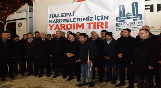 Erzurum Büyükşehir Belediyesi, Suriye’nin Halep şehrinde yaşayan Müslümanlar için yardım kampanyası başlattı. Kampanya kapsamında hazırlanan yardım tırı Erzurum’dan Halep’e uğurlandı. İçerisinde temel yaşam malzemelerinin bulunduğu yardım tırının Halep’e gönderildiğini ifade eden Erzurum Büyükşehir Belediye Başkanı Mehmet Sekmen, Halep’teki tahliye işlemi sırasında konvoya ateş açan rejim yanlısı yabancı teröristleri kınadı ve saldırıda hayatını kaybeden sivillere Yüce Allah’tan rahmet diledi. Başkan Sekmen, yardımlarla ilgili yaptığı değerlendirmede şunları kaydetti: “Halep’te şuanda kardeşlerimiz büyük bir kuşatma altında… Yine yapılan anlaşmalar gereği tahliye söz konusu… Konvoya tekrar bir saldırı daha oldu ve 14 kardeşimiz vefat etti, yaralılar da var. Saldırıları telin ediyoruz. Erzurumlular olarak, Erzurum Büyükşehir Belediyesi olarak çamsakızı çoban armağanı biz de Halep’teki kardeşlerimizin yardımına koşuyoruz. Büyükşehir Belediyemiz, önce kendi belediyemiz bünyesinden başlamak üzere yardım konvoyları tertip ettik. İlk konvoyumuz şuanda yola çıkıyor. 250 yatak, 250 battaniye, 250 yorgan, 250 yastık ve diğer yaşam malzemeleri olmak üzere yardımlarımızı yola çıkartıyoruz. Arkasından gıda takviyesi, un, pirinç, bulgur, mercimek makarna peyderpey göndereceğiz. Yardımlarımız sürekli devam edecek.”