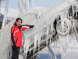 Donmuş otomobilleri gören vatandaşlar, “Çok değişik bir çalışma. Adeta Sibirya görüntüsü olmuş. Çok güzel” dediler.