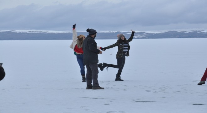 Buzun çatırtısına aldırış etmeden telefonlarından açtıkları müzik önce göl üzerinde halay çeken vatandaşlar, ardından dans etti. Cep telefonlarıyla bol bol fotoğraf ve video de çeken vatandaşlar, Çıldır Gölü’nde bu heyecanı yaşamak için 30 saatlik yolculuk yaptıklarını belirttiler.