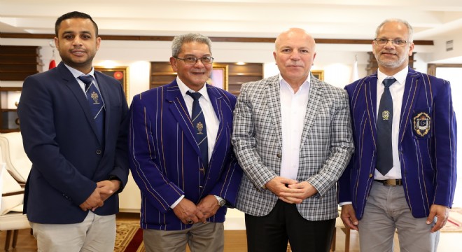Güney Afrika’nın Cape Town şehrinde faaliyet gösteren Osmanlı Kriket Kulübü’nün yetkilileri, Erzurum Büyükşehir Belediye Başkanı Mehmet Sekmen’i ziyaret etti. Kulüp Başkanı Rydwaun Salie ve beraberindeki heyeti ağırlayan Başkan Sekmen, Türkiye’yi ilk kez ziyaret eden Güney Afrika heyetini kentte ağırlamaktan ötürü mutlu olduğunu bildirdi. Sekmen, “Adını Osmanlı âlimi Ebubekir Efendi’nin Güney Afrika’da açtığı ilahiyat okulundan alan Osmanlı Kriket Kulübü’nün biz de ayrı bir önem ve değeri vardır” dedi.