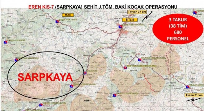 Bitlis'te gerçekleştirilen, PKK terör örgütünü ülke gündeminden çıkarmak ve bölgede barındığı tespit edilen teröristleri etkisiz hale getirmek amacıyla yürütülen operasyonda 38 operasyonel timin görev aldığı ifade edildi. Ayrıca Bakanlık, ‘Eren Kış Operasyonları’nın inançlı ve kararlı olarak başarılı bir şekilde devam ettiğini vurguladı.