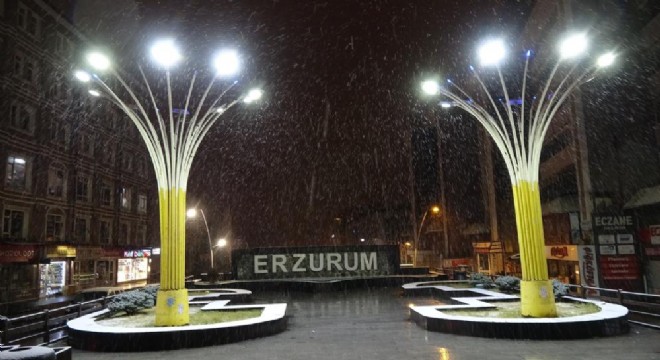 Meteorolojinin Erzurum için uyarısını yaptığı kar yağışı, gece saatlerinde etkisini göstermeye başladı.