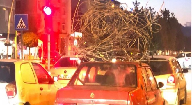 Erzurum'un Aziziye ilçesinde otomobilinin tavanına yüklediği demir yığını ile trafikte ilerleyen sürücü görenleri hayrete düşürdü.