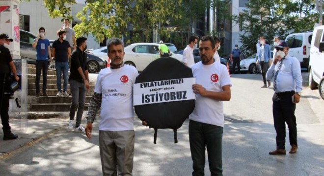 Evlatlarının PKK’lı teröristlerce dağa kaçırılmasından HDP’yi sorumlu gören ve evlat nöbeti tutan Diyarbakır ailelerinden Celil Bektaş ile Süleyman Aydın, HDP’nin Ankara’daki Genel Merkez binasının önüne siyah çelenk bıraktı. Üzerlerinde çocukları Yusuf Bektaş ve Özkan Aydın’ın fotoğraflarının basılı olduğu tişörtlerle genel merkezin önüne gelen iki baba HDP’yi protesto ederek evlatlarının teslim edilmesini istedi.
