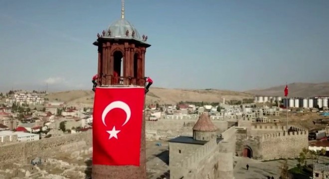 Cumhuriyetin 99. yıldönümü nedeniyle Erzurum’da tarihi ve turistik mekanlarda dev Türk bayrakları açıldı. Sosyal medya üzerinden yapılan paylaşım kısa sürede büyük beğeni topladı.