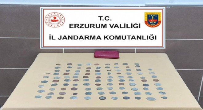 Erzurum İl Jandarma Komutanlığı Kaçakçılıkla Mücadele ve Organize Suçlarla Mücadele Şube Müdürlüğü ile Aşkale İlçe Jandarma Komutanlığı tarafından gerçekleştirilen operasyonla Bizans dönemine ait 104 adet sikke ele geçirildi.