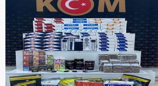 Düzenlenen operasyonlarda yapılan aramada, 28 bin 600 boş makaron, 3 bin 800 adet doldurulmuş makaron, 144 paket sigara, 10 elektronik sigara, 59 kilo 600 gram kıyılmış tütün, 11 kilo nargile tütünü, 10 litre etil alkol, 1 adet telefonu, 14 akıllı saat ve 13 kulaklık ele geçirilirken, olayla ilgili 8 kişi gözaltına alındı.