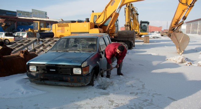 Aşırı soğukların yeniden etkili olduğu Erzurum’da kanalizasyon şebekesinin patlaması sonucu su basan sanayi sitesi buz tuttu. Tamir için getirilen araçların tekerleri buza yapıştı.