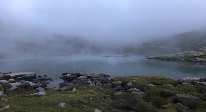 Kaçkarlar'ın 3 bin 711 rakımlı Verçenik Yaylası'nın zirvesine tırmanan dağcılar dönüşte kar yağışına yakalandı.