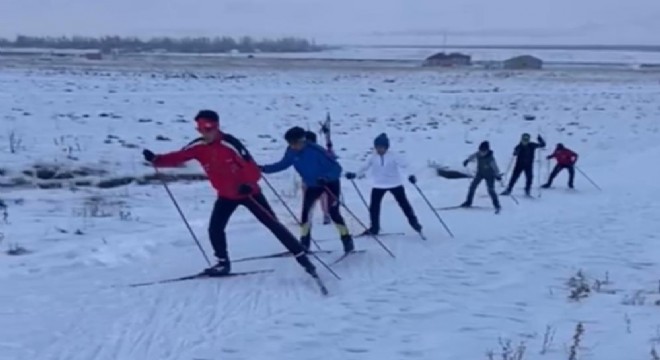 Hakkari'nin Yüksekova Gençlik ve Spor Müdürlüğü bünyesindeki 60 sporcu, Erzurum'da yapılacak kayaklı koşu yarışması öncesi dondurucu havaya rağmen çalışmalarını sürdürüyor.
