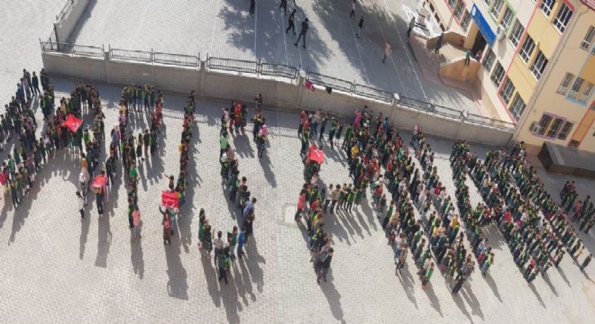 Elazığ'da bir ilkokulda 'Barış Pınarı Harekatı'na destek için 750 öğrenci ile koreografi hazırlandı.