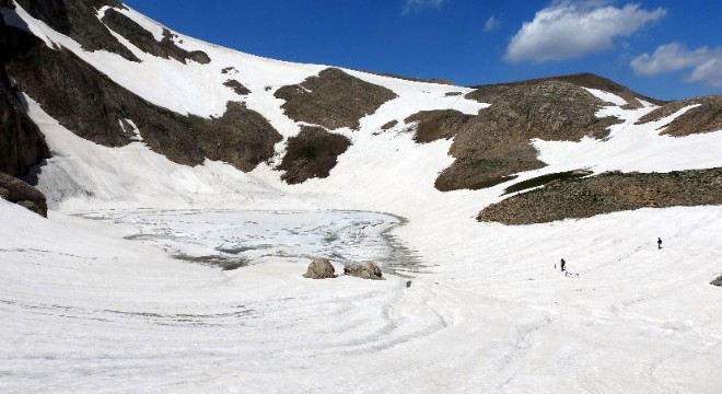Erzincan’a bağlı Çağlayan beldesi Tatlısu köyünden yaklaşık 10 saatlik zorlu bir tırmanışın ardından buzulun bulunduğu alana ulaşan İHA muhabiri Murat Aydemir ve beraberindekiler, buzulu ve bulunduğu alanı görüntülemenin heyecanını yaşadı. Buzulun bulunduğu alana devasa kaya kütleleri akarken, yeraltından da kulakları sağır edercesine su seslerinin gelmesi dikkat çekti.