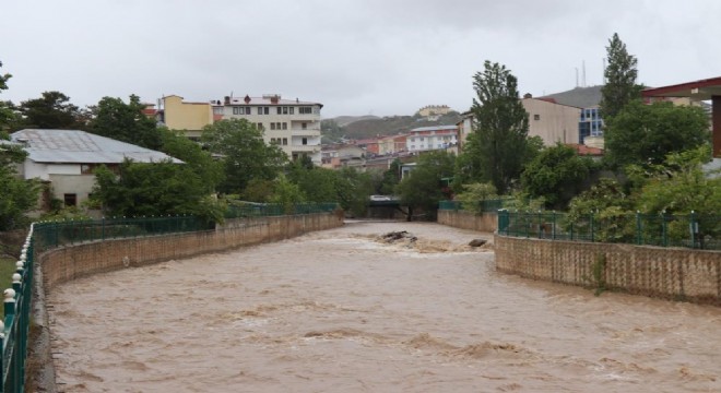 Oltu ilçesinden geçen Oltu Çayı’nın, yağan yağmurlar ve karların erimesi sonucu debisi yükseldi.