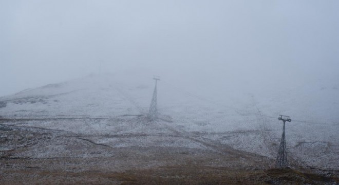 Türkiye'nin önemli kayak merkezlerinden Palandöken'in zirve noktası olarak bilinen Ejder Tepesi'ne mevsimin ilk karı yağdı.