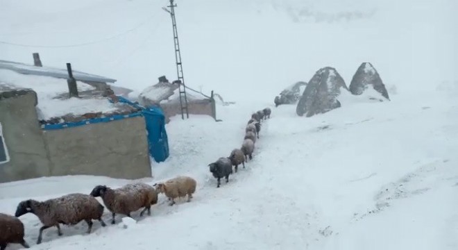 Erzurum’un Horasan ilçesi Kadıcelal Mahallesi'ne bağlı Çayanyurdu mezrasında hayvancılıkla uğraşan köylüler koyun sürüsüyle şiddetli kar yağışı ve tipiye yakalandı.