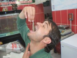 5 yıldır mide rahatsızlığı çektiğini ifade eden Metin Telhan ise, “Midemde inanılmaz bir ağrı ve yanma oluyordu. Doktora gittim ve ileri derecede gastrit olduğunu söyledi. Ağabeylerim bana canlı kırmızı benekli alabalık yutmamı tesviye ettiler. Yaklaşık 4 ay önce Oruç Balıkçılığa geldim. Balığı yuttum ve midemdeki ağrıların yüzde sekseni geçti diye bilirim. Yaklaşık 4 aydır her ay gelip 1-2 tane yutuyorum. Bu balıkların en önemli özelliği yutarken zorluk çekmiyorsunuz. Midede herhangi bir ağrı, sızı yapmıyor. Benim bu hastalığı çekip de tedavisi olmadığını düşünen hastalara tavsiyem gelip burada kırmızı benekli alabalık yutmaları. Ben çok şükür bu ağrıların çoğundan kurtuldum. Umarım diğer hastalar da buraya gelip şifa bulur” diye konuştu.