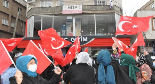Şırnak anneleri ile şehit yakınları, HDP Şırnak il binasına yürüdü. PKK’lı teröristlerce çocukları dağa kaçırılan Şırnaklı kadınlar ile şehit yakınları yürüyüşün ardından HDP İl Başkanlığı binası önüne geldi. Yoğun güvenlik önlemleri altında ellerinde Türk bayrakları ile HDP il binasına yürüyen kadınlar, terör örgütü PKK’ya ve HDP’ye tepkilerini dile getirdi. Kadınlar sık sık ’Kahrolsun PKK’, ’Şehitler ölmez vatan bölünmez’, ’Kahrolsun PKK, tırnakçı HDP’ ve ’Kahrolsun PKK, işbirlikçi HDP’, ’Kürt-Türk kardeştir, PKK kalleştir’ sloganları attı.