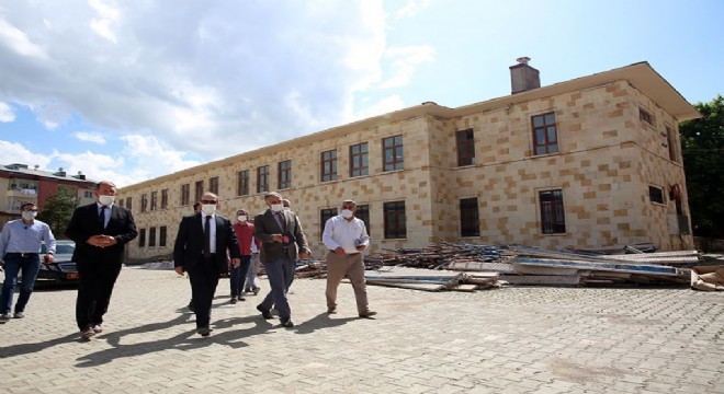 Vali Cüneyt Epcim, restorasyon çalışmalarında son aşamaya gelinen tarihi Bayburt Lisesi’nde incelemelerde bulundu.