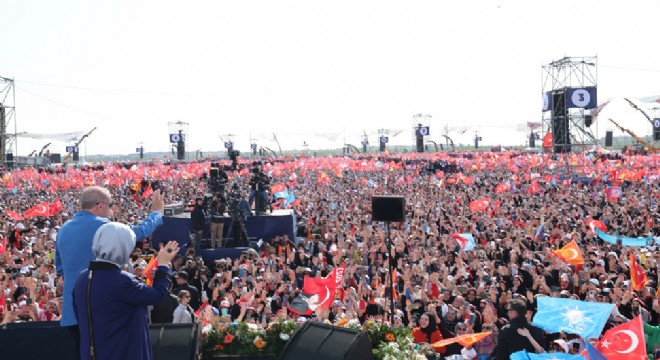Cumhurbaşkanı Erdoğan, Cumhuriyetin ilk asrının demokrasi ve kalkınma eksiklerini beraberce telafi ettikleri gibi Türkiye Yüzyılı'nı da milletle beraber kuracaklarını belirterek, şöyle devam etti: "Şimdi buradan öyle bir ses verin ki yürekler titresin, gönüller coşsun, kalplerin atışı hızlansın. Hazır mıyız? Şimdi buradan öyle bir ses verin ki ülkemizin ve dünyanın dört bir yanından duyulsun. Hani o Avrupa'nın gazeteleri, dergileri var ya onlar şimdi burayı izliyorlar. Acaba Atatürk Havalimanı'nda ne oluyor? İşte burada, cevabı siz vereceksiniz siz. Bu mübarek ülkenin, bu kutlu devletin üzerinde karanlık hesaplar yapanların yüzü düşsün. Öyle bir ses verin ki 14 Mayıs'ta sandıktan çıkacak sonucun müjdecisi olsun. Hazır mıyız? İstanbul, 14 Mayıs'ta fethinden 570 yıl sonra bu şehrin Türkiye Yüzyılı heyecanıyla buluşturuyor muyuz? İstanbul, 14 Mayıs'ta bu ülkenin ve bu şehrin kazanımlarına sahip çıkıyor muyuz? İstanbul, 14 Mayıs'ta evlatlarının geleceğine sahip çıkıyor muyuz? İstanbul, 14 Mayıs'ta Türkiye Yüzyılı için 'Bismillah' diyor muyuz? İstanbul, 14 Mayıs'ta tercihini doğrudan yana kullanıyor musun?”