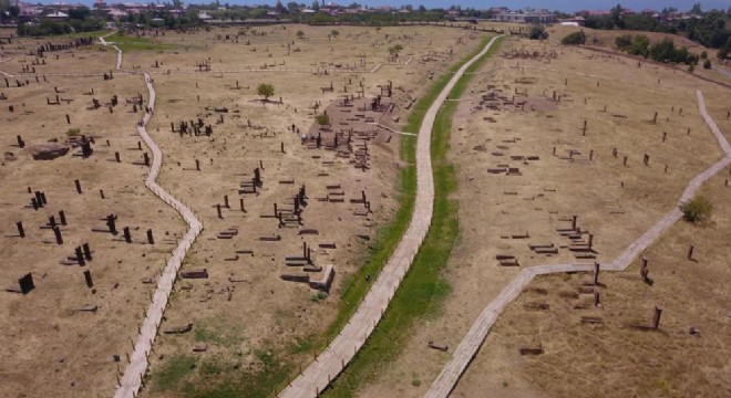 Bitlis’in Ahlat ilçesinde bulunan dünyanın en büyük Türk İslam mezarlığı olma özelliğini taşıyan Selçuklu Meydan Mezarlığı’nda yürütülen kazı ve restorasyon çalışmalarında, Birinci Dünya Savaşı’nda oluşan tahribatın izleri siliniyor.