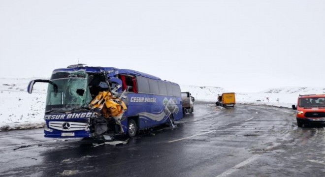 Çat ilçesinde yolcu otobüsü ile tırın çarpıştığı kazada 1 kişi hayatını kaybetti, 3 kişi yaralandı.